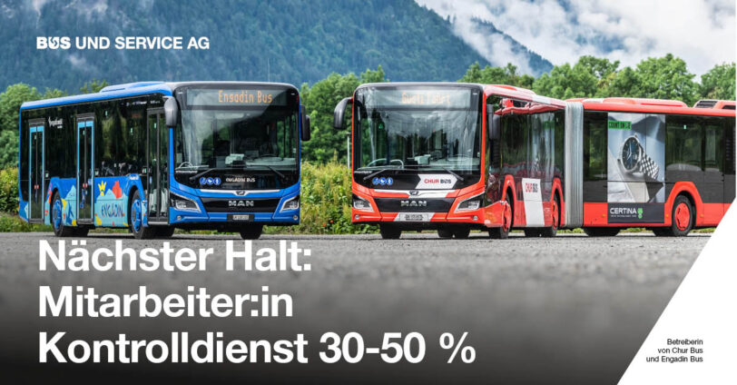Die Bus und Service AG (BuS AG) steht für moderne und umweltfreundliche Mobilität in Graubünden. Mit über 60 Solo- und Gelenkbussen betreiben wir zwei leistungsstarke Busunternehmen: Chur Bus und Engadin Bus. Unsere rund 220 Mitarbeitenden bringen täglich ca. 25’000 Fahrgäste bequem und sicher an ihr Ziel. Steigen Sie bei uns ein und bewegen Sie mit uns die Zukunft.